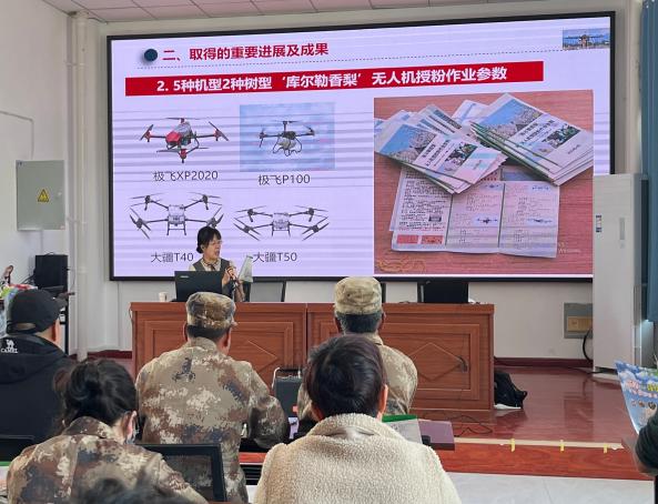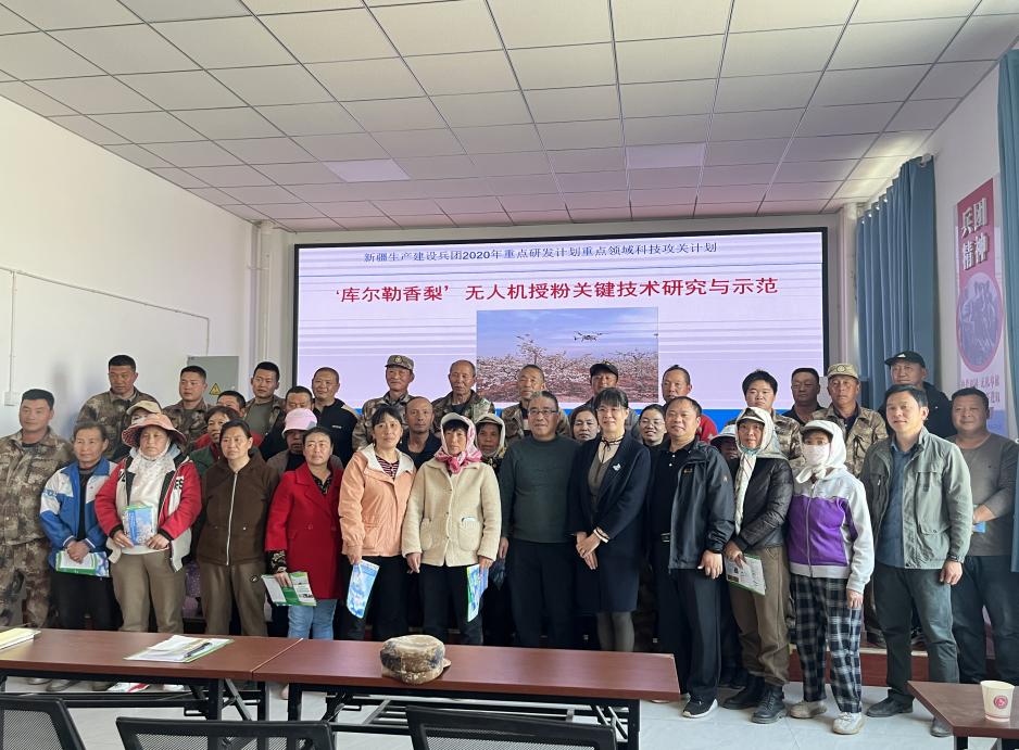 在'库尔勒香梨'花期临近、授粉工作即将开始之际,项目组成员及时将技术送到基层,为果农排忧解难,服务于无人机授粉这一新型智慧农业新技术,充分体现现代技术对特色产业的支撑功能。