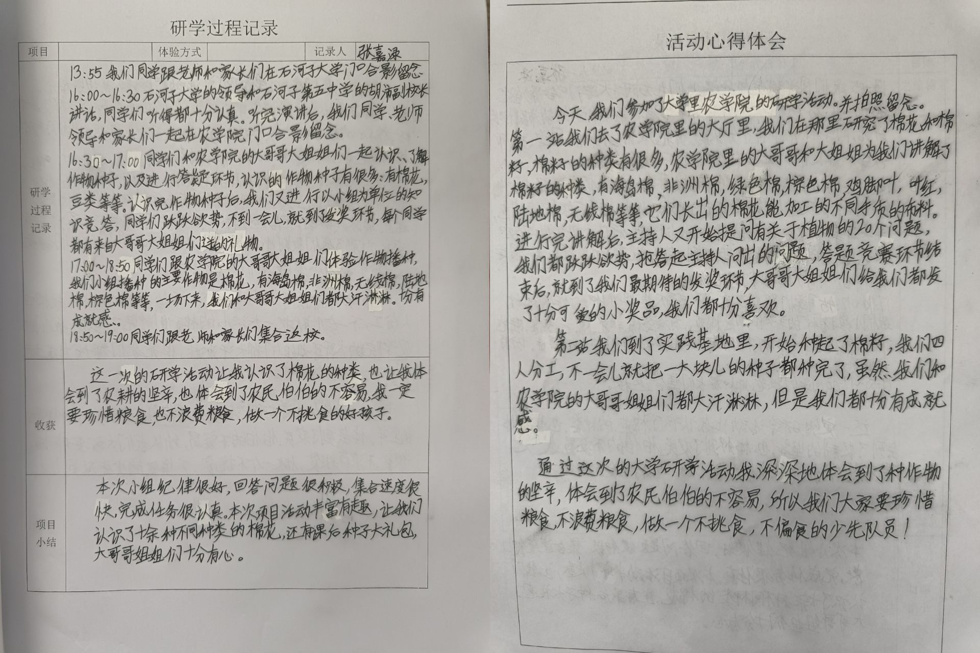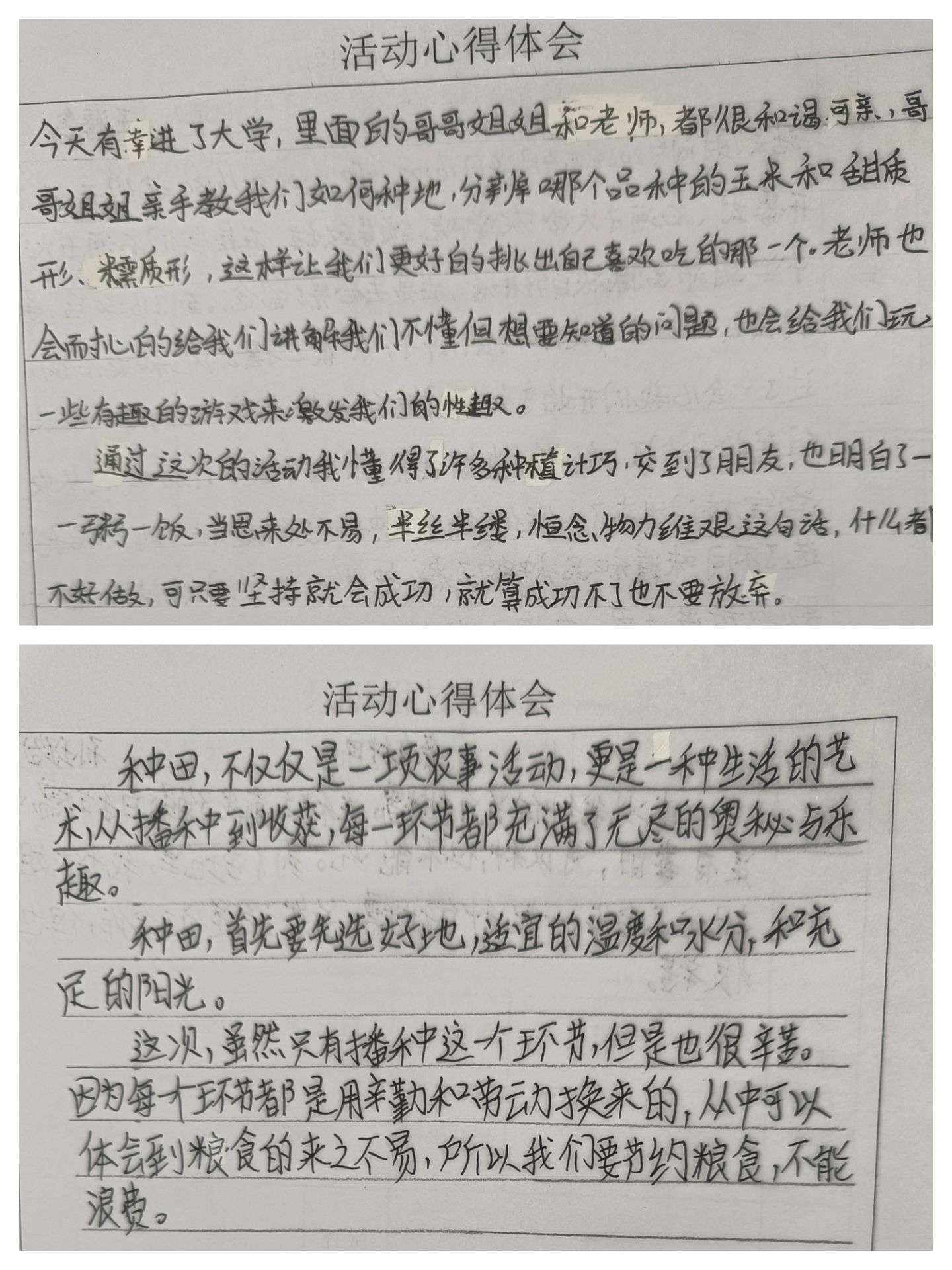 走进自然课堂,收获别样精彩。这次“耕读促双减,精神永流传”研学旅行联谊活动,使孩子们对农耕文化有了更直接的了解。通过体验劳动,孩子们更深刻体会到了“一粥一饭当思来之不易,半丝半缕恒念物力维艰”。孩子们在研学报告中写道:“我今后要珍惜当下的幸福生活,发奋学习,成为栋梁之材,为祖国发展做贡献。”每一位孩子都收获颇丰。
