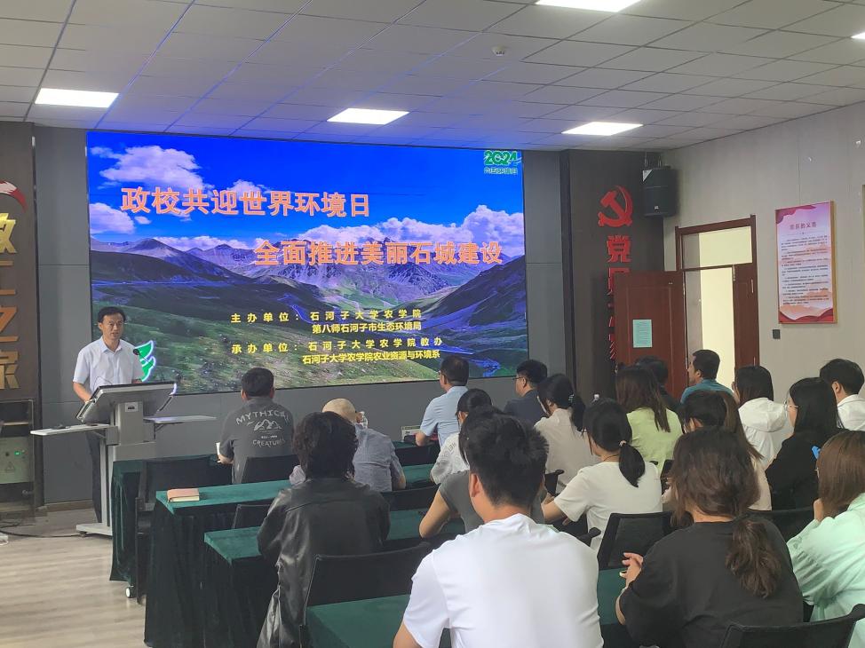 值此“六五国际环境日”到来之际,为响应国家生态环境部“全面推进美丽中国建设”的号召,304永利集团与第八师石河子市生态环境局在304永利集团官网联合开展了“政校共迎世界环境日,全面推进美丽石城建设”的活动,参会的有八师生态环境局贺磊主任、李维军高级工程师、李瑞琼老师以及304永利集团教办、农业资源与环境系部分老师和农资2022级同学们。