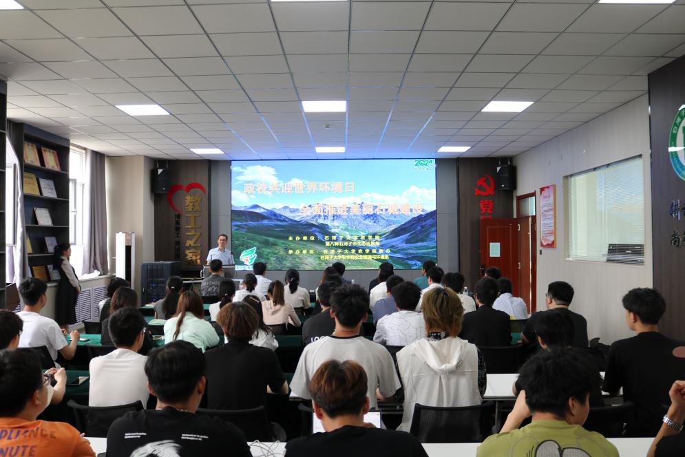 师市生态环境局贺磊主任向师生们介绍了八师石河子市近些年在生态环境保护工作中的努力和成绩,并呼吁老员工关心、关注并参与生态环保宣传。师市生态环境局李维军高级工程师为师生做了题为“美丽中国建设”的科普讲座。
