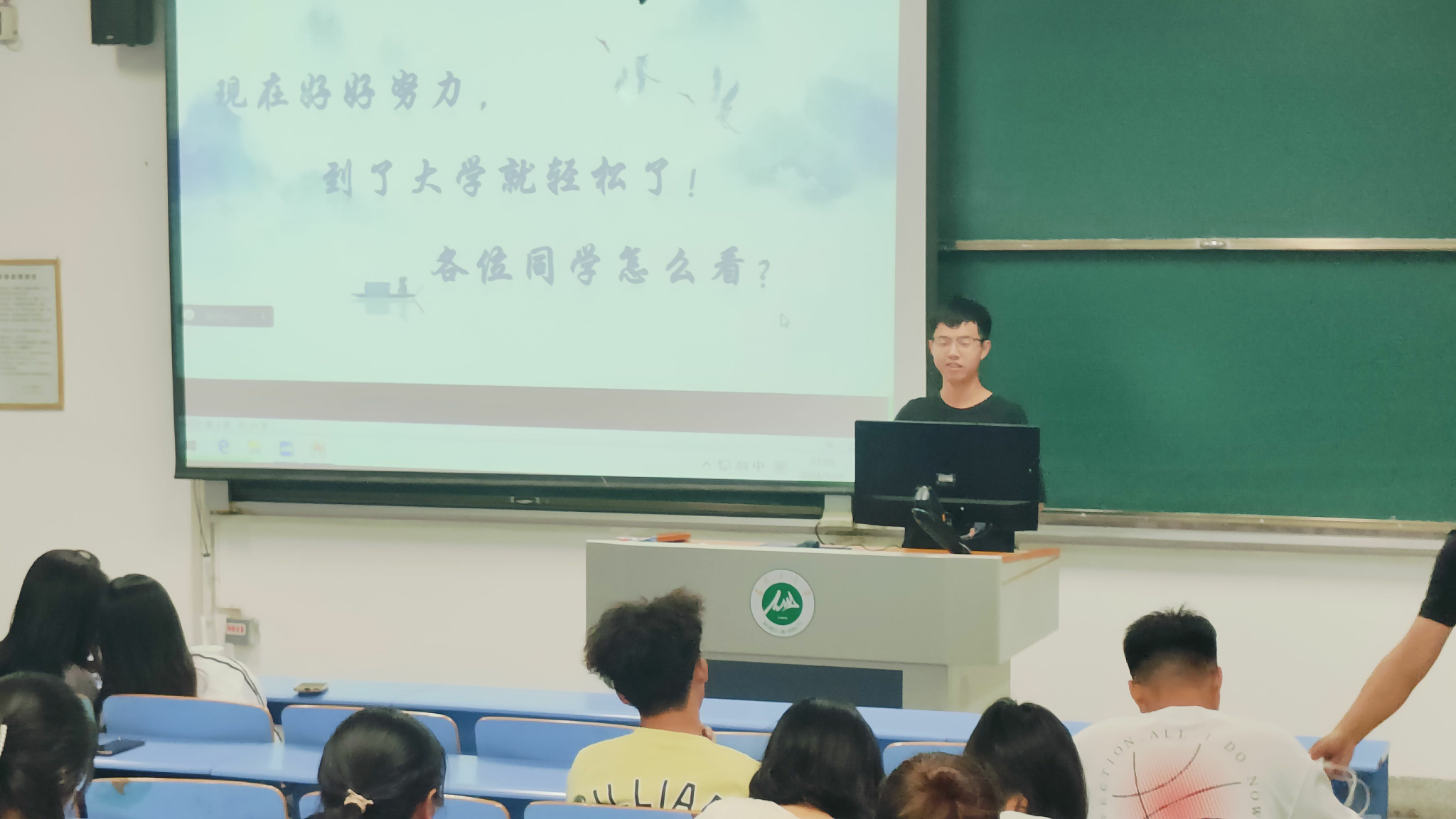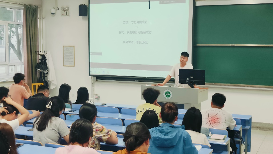 谢梓正同学详细生动地为同学们分享了他的员工工作经验、日常生活趣事以及未来规划,勉励同学们珍惜大学时光,不辜负自己的青春。