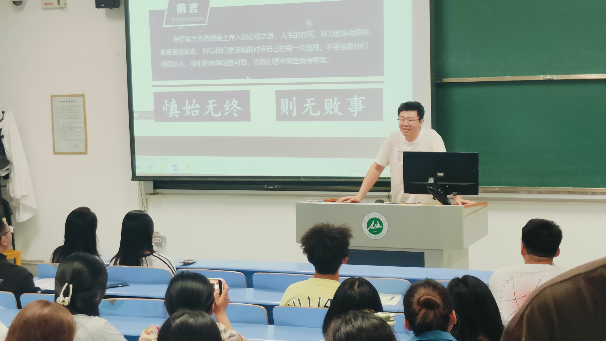 周晓通同学幽默风趣地讲述了自己的考研心路历程,及如何制定复习计划、调整心态等,强调按照自己的方式学习,不和别人比进度。