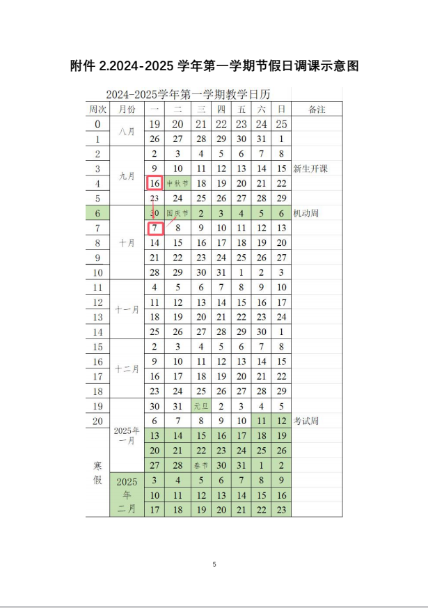 附件2:2024-2025学年第一学期节假日调课示意图