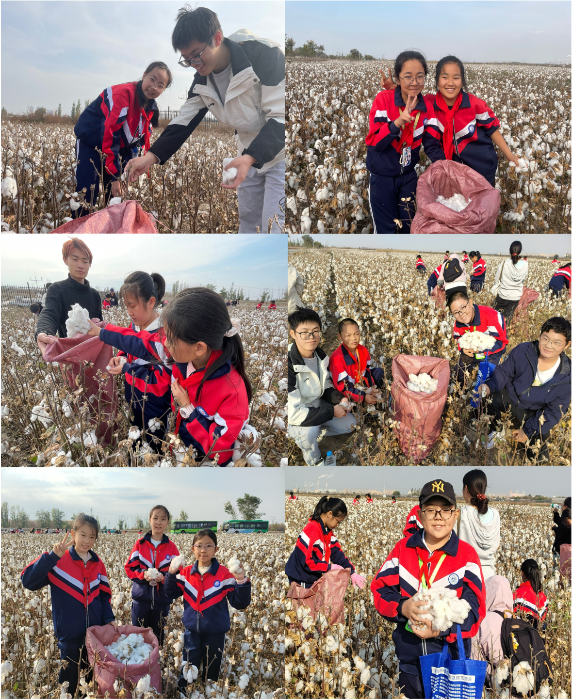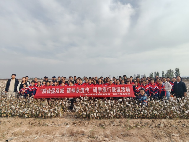 2024年10月15日下午15:00,304永利集团农学系师生40人与石河子第五中学六年级的近50名师生满怀着兴奋与期待,踏上了前往棉花基地的研学之旅。