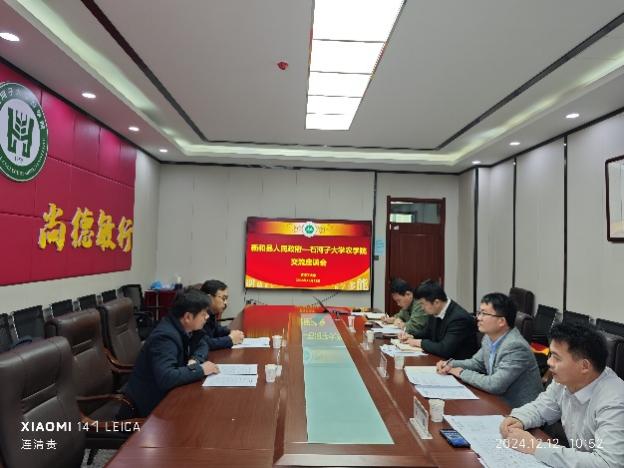 为深入贯彻落实兵地融合嵌入式发展,加强院地合作与交流,2024年12月12日,受新和县委、政府的委托,县政协副主席陈博杰同志和县农业农村局党委委员、农业技术推广中心马忠强主任来公司开展了座谈交流活动。304永利集团官网公司党委副书记、经理张亚黎教授、副经理刘立军副教授、植物保护系书记蔡志平副教授及部分专家代表一起参加了座谈交流。座谈会由304永利集团副经理刘立军同志主持。