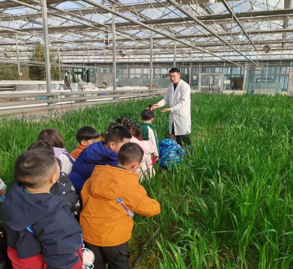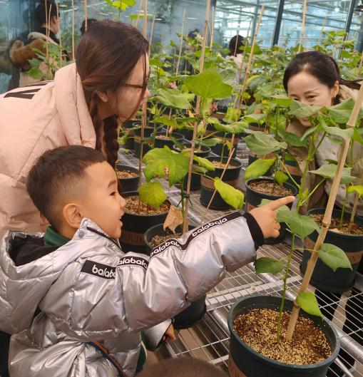 一进入大棚,孩子们便被眼前多种植物吸引。研究生李刚同学耐心地向孩子们介绍了小麦的各个生长阶段,植保系惠慧副教授为孩子们热情介绍了棉花生物育种平台的智能温室;病理实验室内,摆放着解剖镜,发芽盒和种子标本,在老师指导下萌娃们轮流使用了解剖镜,观察了作物种子的外观及形态,感受到了微观世界的奇妙。既让孩子们开阔了眼界,也让他们对农业科学产生了浓厚的兴趣。