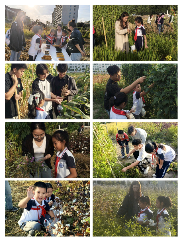 在棉花种植区,万文亮老师耐心指导同学们分辨彩色棉与普通棉的区别,从纤维颜色、质感等细节入手,让大家直观认识不同棉花品种的特性;在玉米种植区,大志愿者示范“一叶一苞”快速剥穗技巧,孩子们分组竞技,体验“手中有粮”的艰辛与喜悦;来到豆类作物种植区,同学们轻剥鹰嘴豆荚,近距离观察鹰嘴豆的形态,解锁课本之外的作物知识;在油莎豆种植区,大家手持工具,兴致勃勃地挖寻埋在土壤中的油莎豆,在泥土与汗水的交织中体会劳作的乐趣;步入药用植物区,薄荷清凉、甘草回甘,趣味地图瞬间激活了孩子们对中医药文化的兴趣。