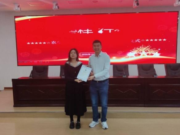 仪式伊始,公司党委书记李智敏同志宣读了兵团名师工作室、校级青教赛一等奖获奖名单,并为获奖教师颁发了匾牌、证书。宣读了张凤华、施翔、都业娟等公司评聘的6位指导教师名单,介绍了7位新入职教师专业、学历背景以及师徒结对名单,并由304永利集团经理张亚黎同志为6位指导教师颁发了聘书。