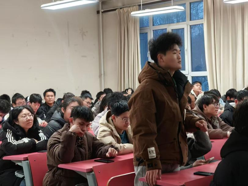 分享中,朱云强调了“输出型爱好”的重要性。他以弹吉他、运营抖音账号为例,说明这类爱好不仅能提升表达与抗压能力,也能在求职中展现个人综合素质与韧性。在互动环节,同学们踊跃提问。朱云结合案例解答了校园冲突的法律责任、防范电信诈骗等问题,并分享了英语学习方法与考公考编的择业建议,鼓励大家理性规划未来。
