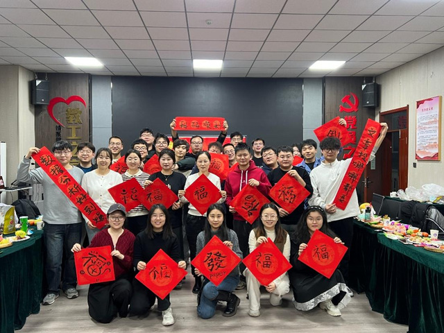 活动还设置了“科学知识有奖问答”、“抢凳子”等环节,拉近了团队成员的距离,欢声笑语此起彼伏。在“翰墨迎春”环节,同学们挥毫泼墨,写下一个个风格各异的“福”字,传递对新年的美好祝愿。